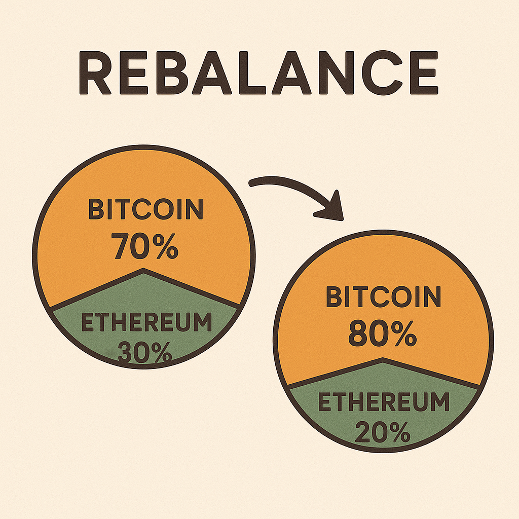 | ステップ 3 | リバランス実行 | 80% | 20% | イーサリアムを10%分売却し、その資金でビットコインを購入。上昇分を利確し、元の配分に戻す |