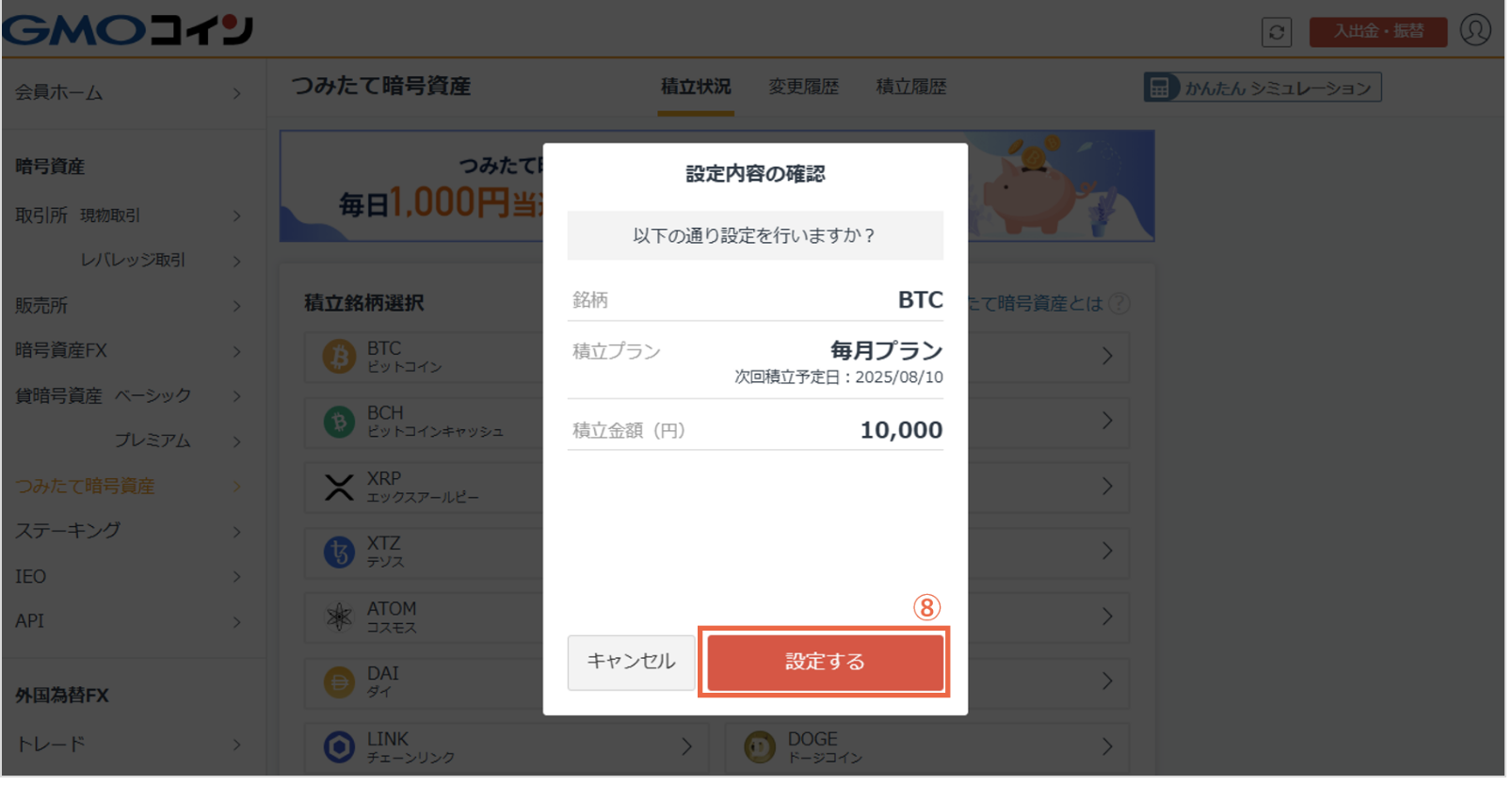 ここからは、ビットコイン積立の設定方法について解説していきます。